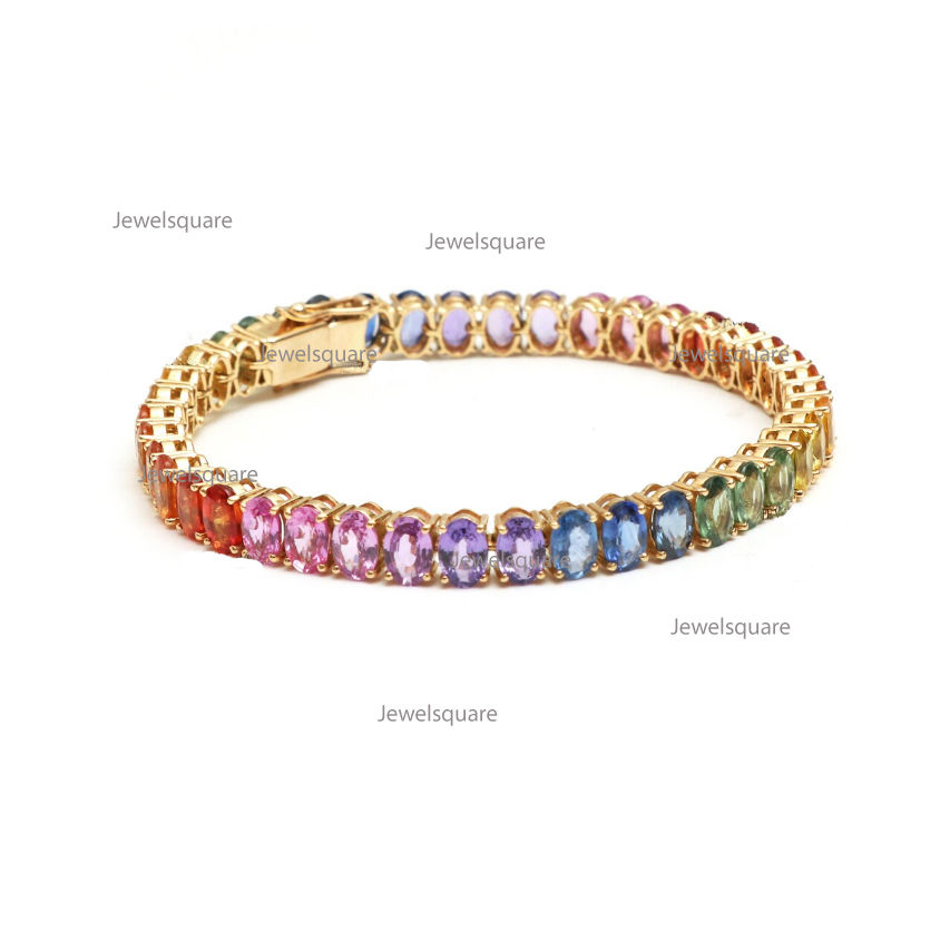 Natural Oval Shape Rainbow Sapphire in 14K Gold Tennis Bracelet